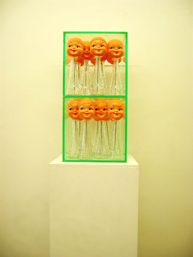 Cabinet 3 looks at genetically created children where perfection is required in our current fixation with attainable beauty. This reminds me of a pick"n"mix jar of sweets where nothing is left to chance or surprise.